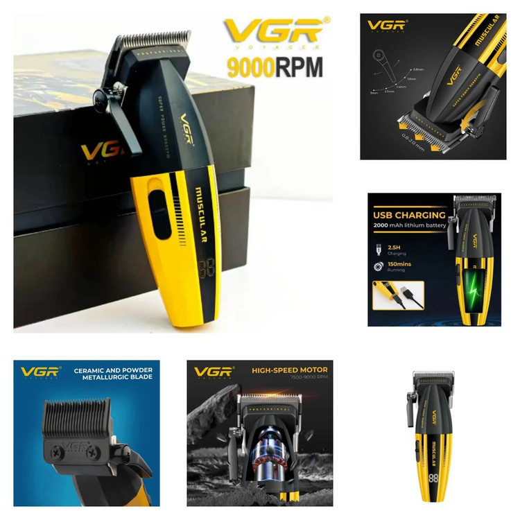 ماشین اصلاح وجی ار برق و شارژ تیغه کربن دو سرعته 7000و 9000 دارای ۶ شانه ته فلز تیغه تیپر فوق العاده قوی